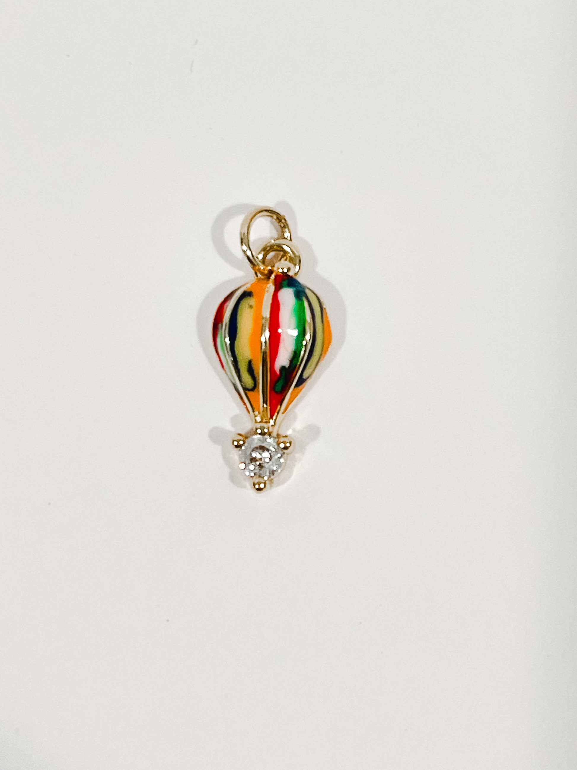 Tiny hot air balloon gold plated charm with rhinestone basket